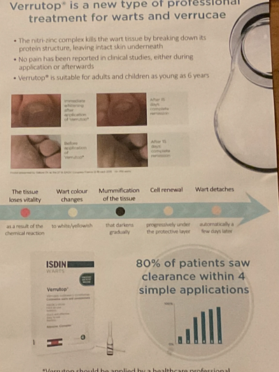 Verrutop is a new treatment in the UK and is a Class 2A Healthcare Product, which should only be used by a qualified medical professional.